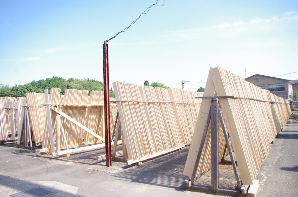 家に使う木材は乾かさないと建築材料として使用できません。当然、昔は木材を乾かすのは天日干しでした。でも、今は木材の95%位は機械熱による矯正乾燥になっています。