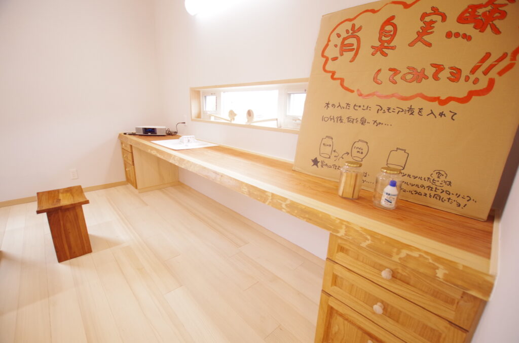 「もみの木」は基本天日干しで材料を乾かします!他の建材では省かれる工程を昔ながらに行います。このひと手間が森林浴効果を生むんです!