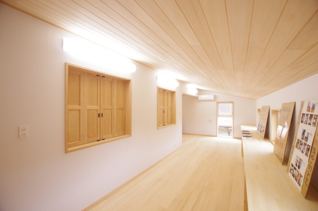 天井:もみの木無垢板張り
