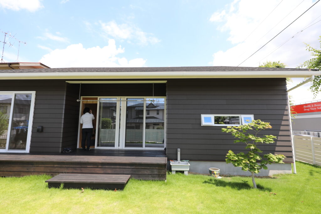 黒いラップサイディングと芝のグリーンがいい感じで生えますね。