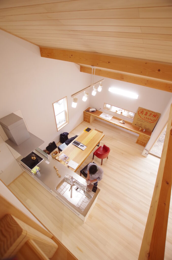 大きな吹き抜け、二階からキッチンを見下ろしたら今日の料理が覗けます!何が出るのか楽しみな食事の楽しみが減っちゃうかな⁉