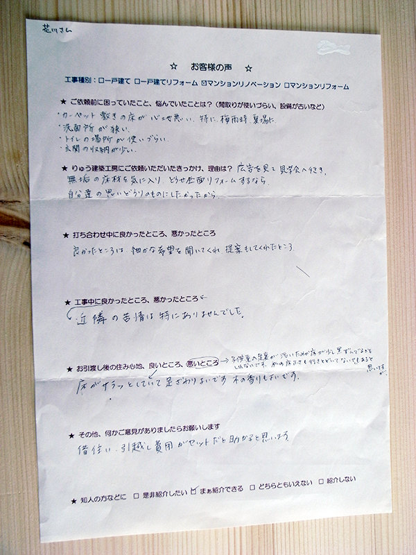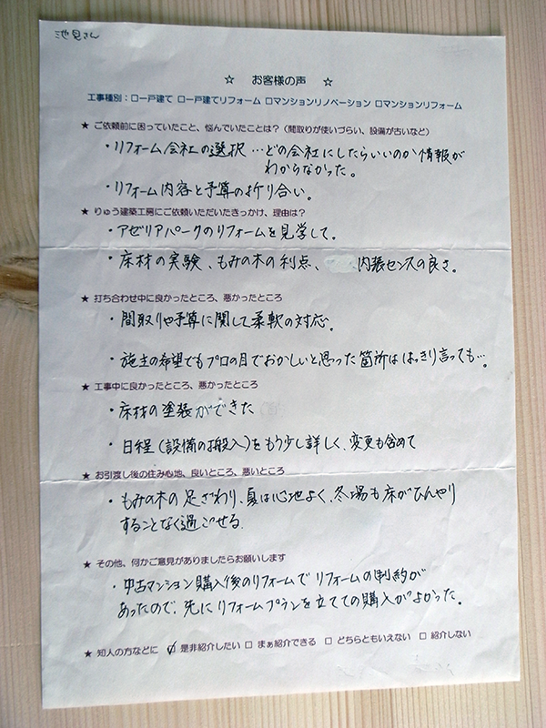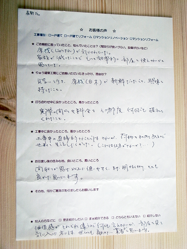 また、リノベーションやリフォームをご依頼頂いた方からも、次のような感想を頂いています。